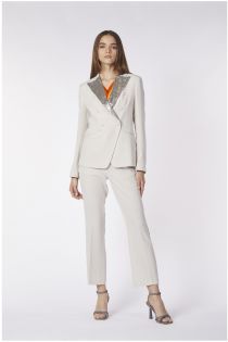 Veste à double boutonnage en tissu fluide. un tissu avec paillettes sur le revers enrichit et embellit le vêtement le rendant parfait pour une soirée spéciale.