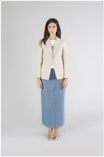 Élégante veste à simple boutonnage en tissu stretch. fermeture à deux boutons et poches passepoilées. vêtement parfait pour les occasions décontractées ou formelles.