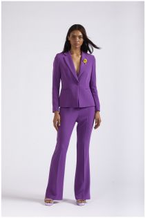 Veste à un bouton en tissu frais et fluide. accessoire amovible au crochet appliqué sur le revers. poches passepoilées.