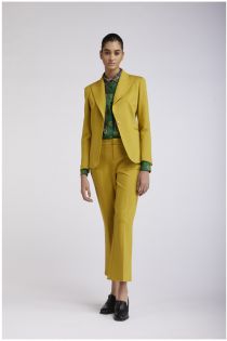 Veste à simple boutonnage et à col ouvert fabriquée dans un tissu extensible confortable.