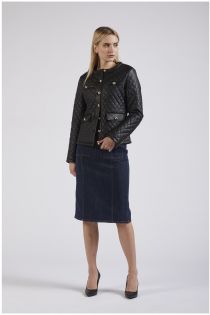 Veste en simili-cuir matelassée à manches longues avec boutons précieux portant le logo.