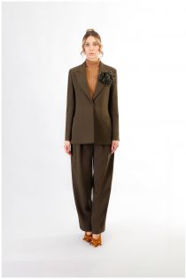 Veste oversize à simple boutonnage et col montant en tissu bi-stretch. broche fleurie élégante. vêtement intemporel à associer avec un pantalon skinny ou évasé.