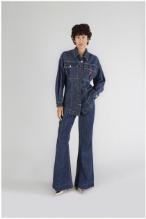 Veste militaire en toile denim ample. broche amovible et manches longues. vêtement parfait pour ceux qui se sentent indépendants et à la mode et qui aiment expérimenter et toujours être chic et original.