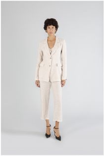 Veste droite sans doublure en tissu de lin à fines rayures. fermeture à un bouton et poches passepoilées à rabat. complétez le look avec un haut et un pantalon assortis. le tissu léger accompagne vos looks tout au long de la saison printemps-été.