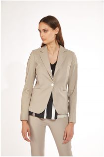 Veste resserrée à la taille en tissu hyper-stretch avec bouton central. Article polyvalent qui accompagne les lignes féminines avec classe.
